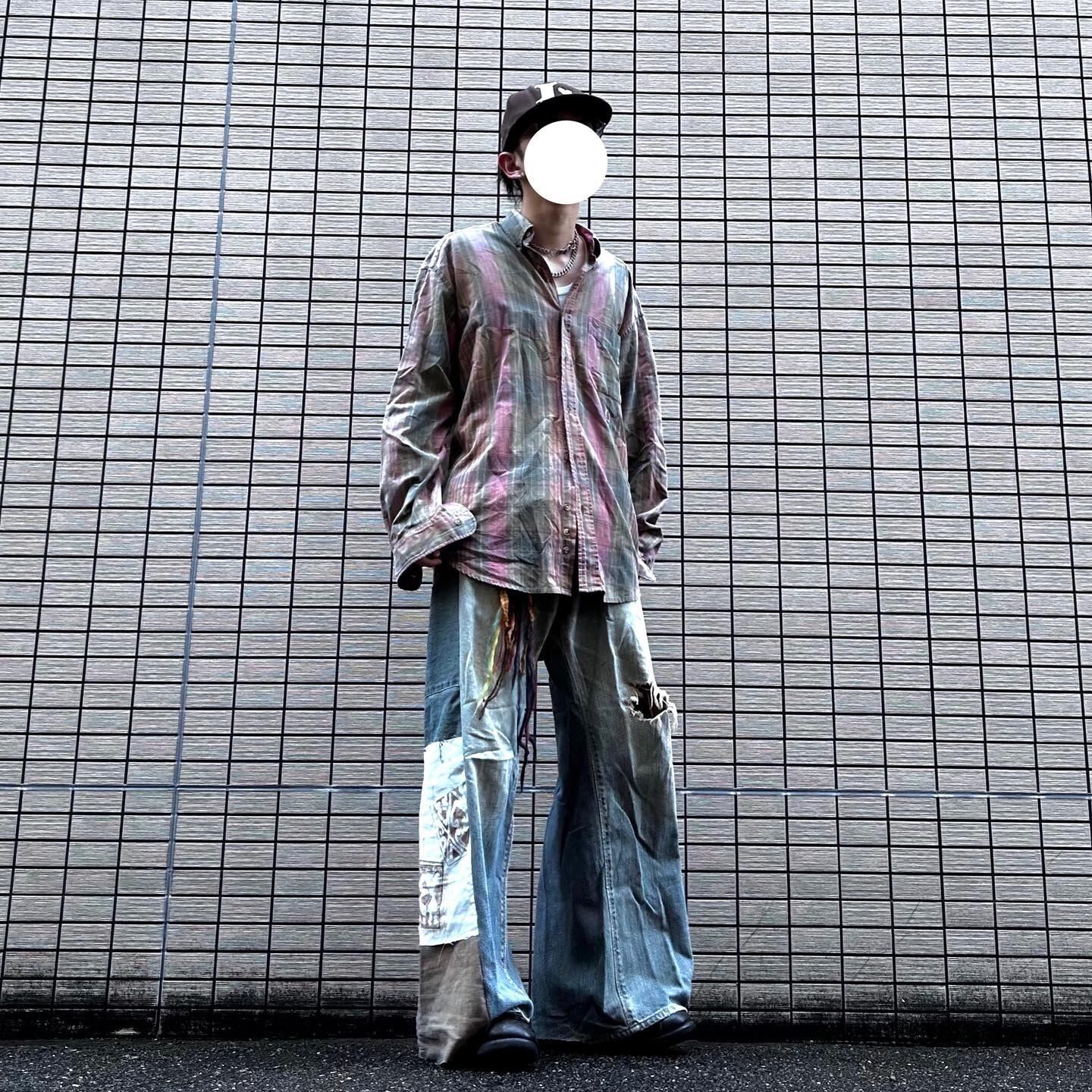 Pant 再構築 アロハシャツ ドッキング フレア ヴィンテージ ライクダメージデニム