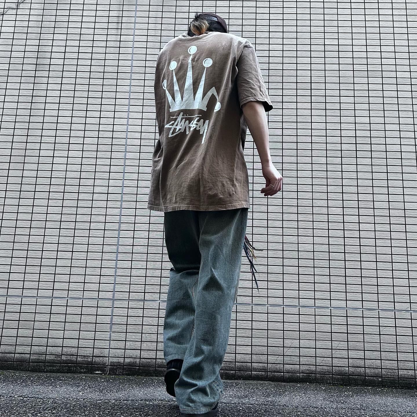Tops Stussy old ぼろ加工 色褪せ ヴィンテージ ライク クラウンロゴT