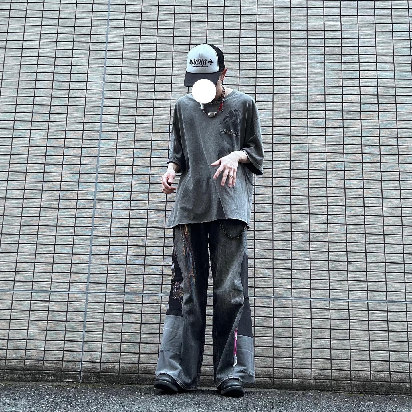 Tops used ドラゴンプリント 鬼渋 ウォッシュTシャツ カットオフリメイク