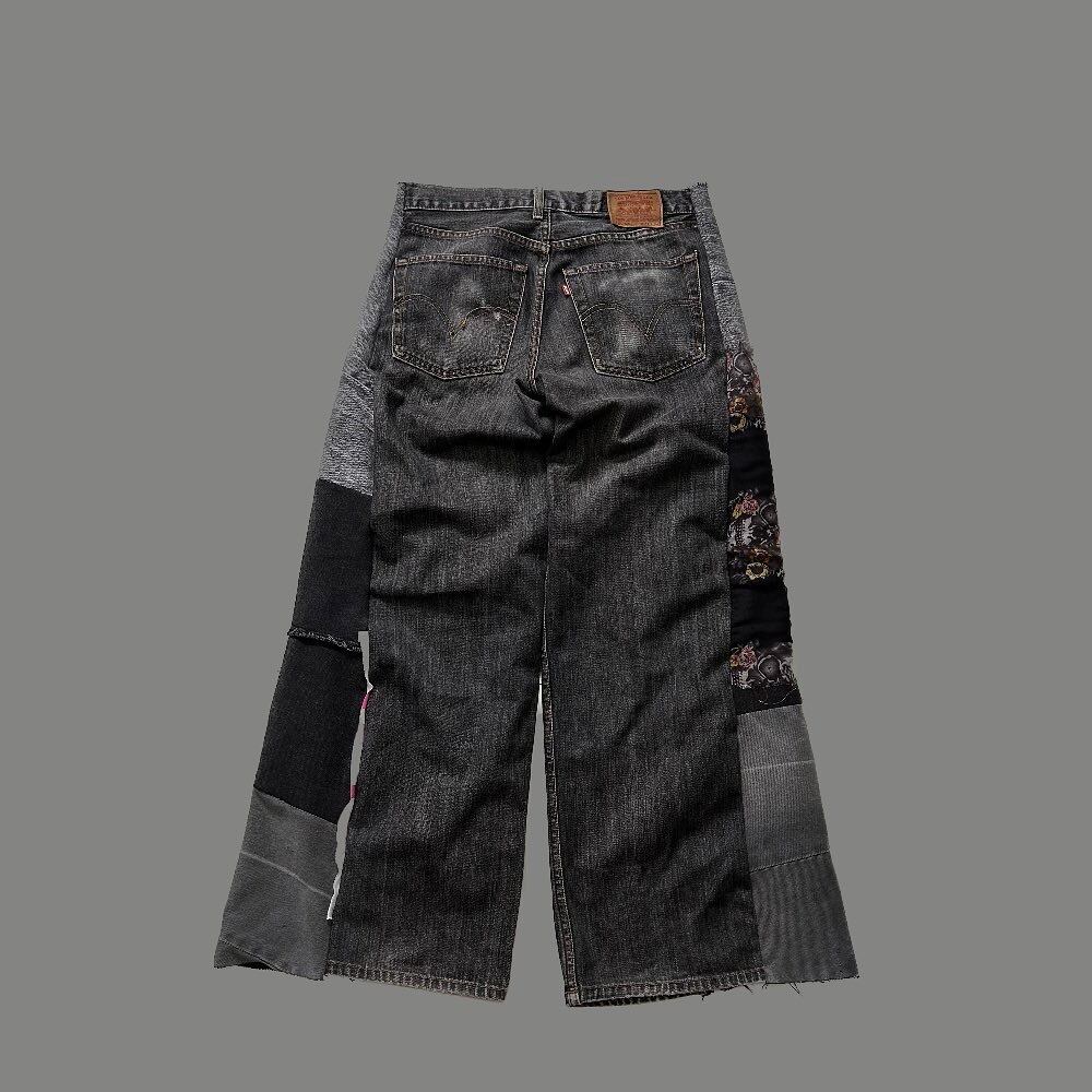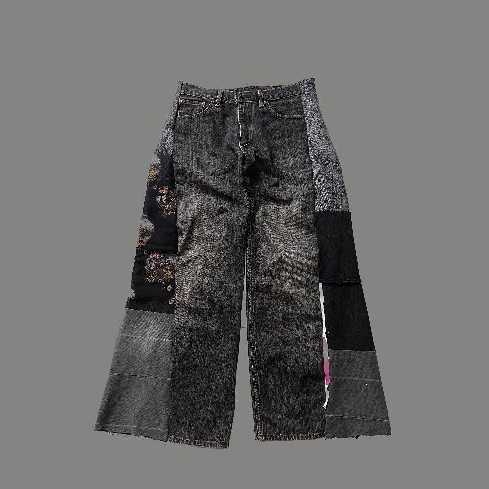 Pant 再構築 リメイクフレアデニム スカル髑髏スカーフドッキング シルエットgood