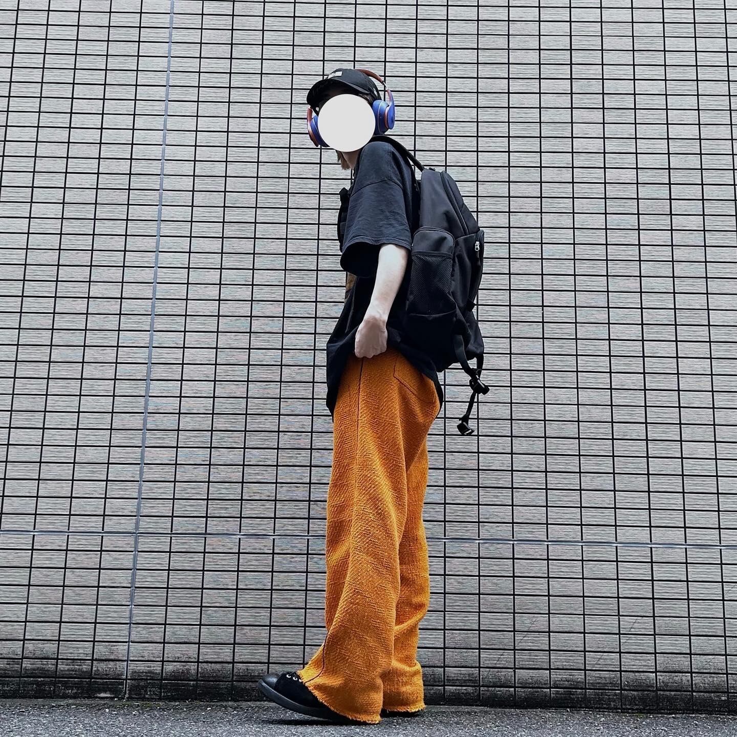 遊び心のあるTシャツにド派手なワイドなパンツを合わせリュックは流行りのシンプルなオークリーのバックパックで抑えています!