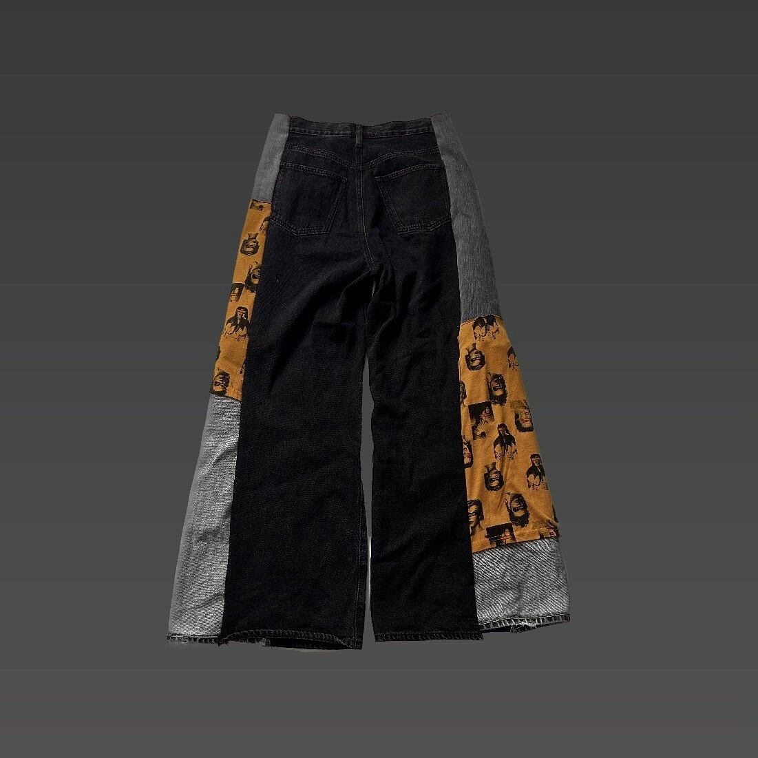 Pant 再構築 ブラックデニム リメイククラッシュフレアデニム