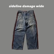 Used 古着 リメイク サイドライン ワイドバギークラッシュデニム 差し色 ワイドデニム