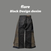 再構築 ヴィンテージ ライク ワイドフレアデニム パッチワークデザイン 髑髏ラメデザイン 色落ち