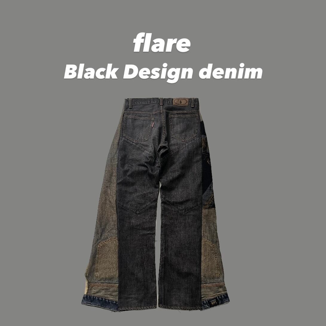 再構築 ヴィンテージ ライク ワイドフレアデニム パッチワークデザイン 髑髏ラメデザイン