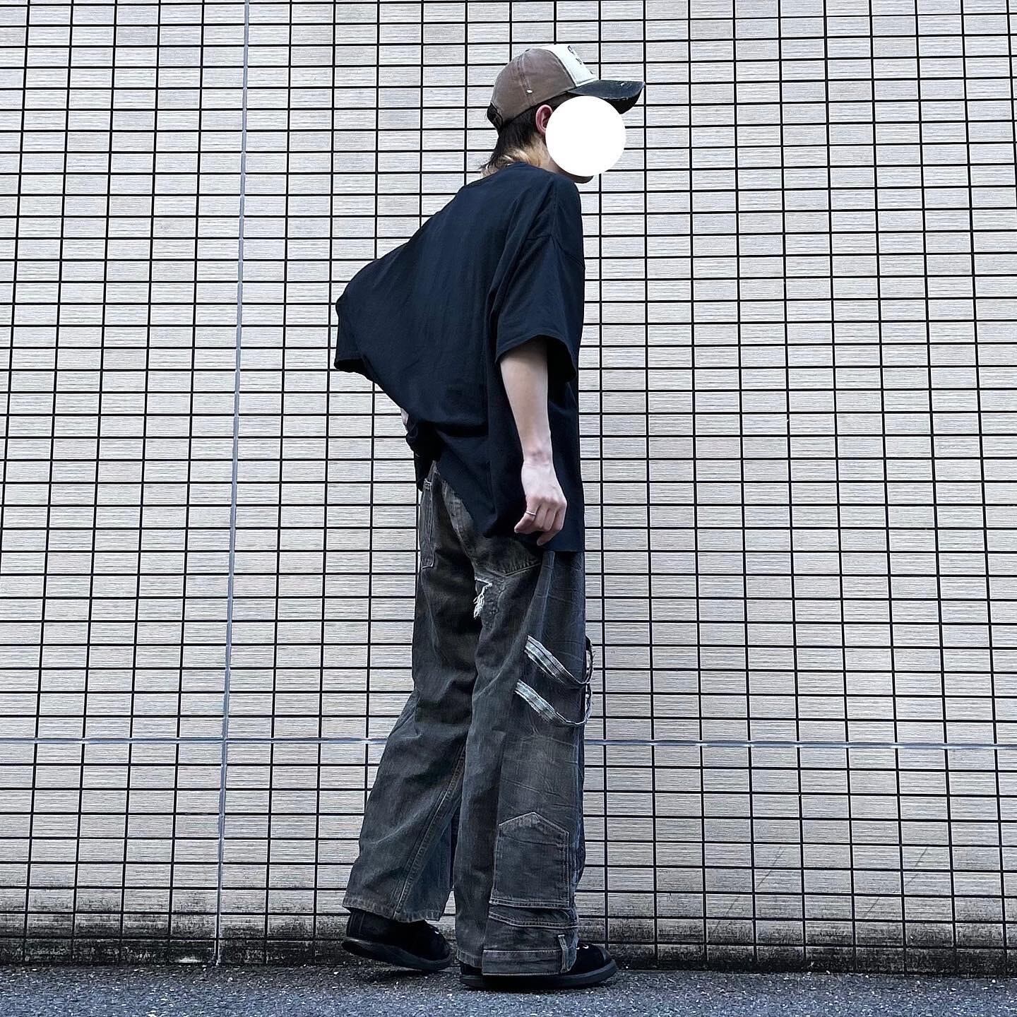 Pant 再構築 ブラックワイドパッチワークデニム ワイド リメイク ボロ加工
