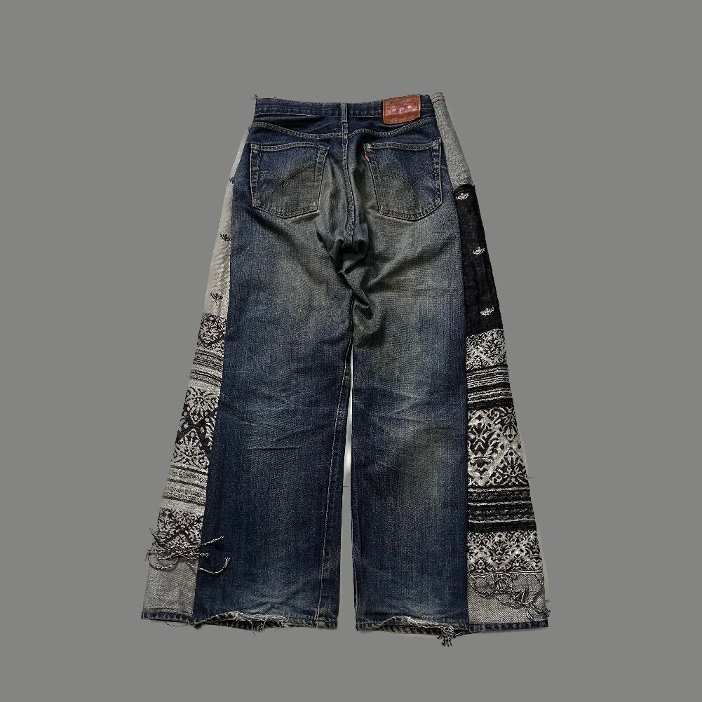 Pant 再構築 ダメージフリンジフレアデニム ワイドシルエット リメイク クラッシュ ヴィンテージ 加工