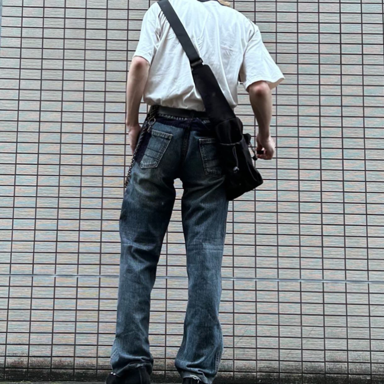 子供っぽい雰囲気にならないようデニムはシルエットのよいやや細身のデザインの効いたデニムを使用しています!レトロなアイテムを使うコーデはここから先も流行ること間違いなしです!