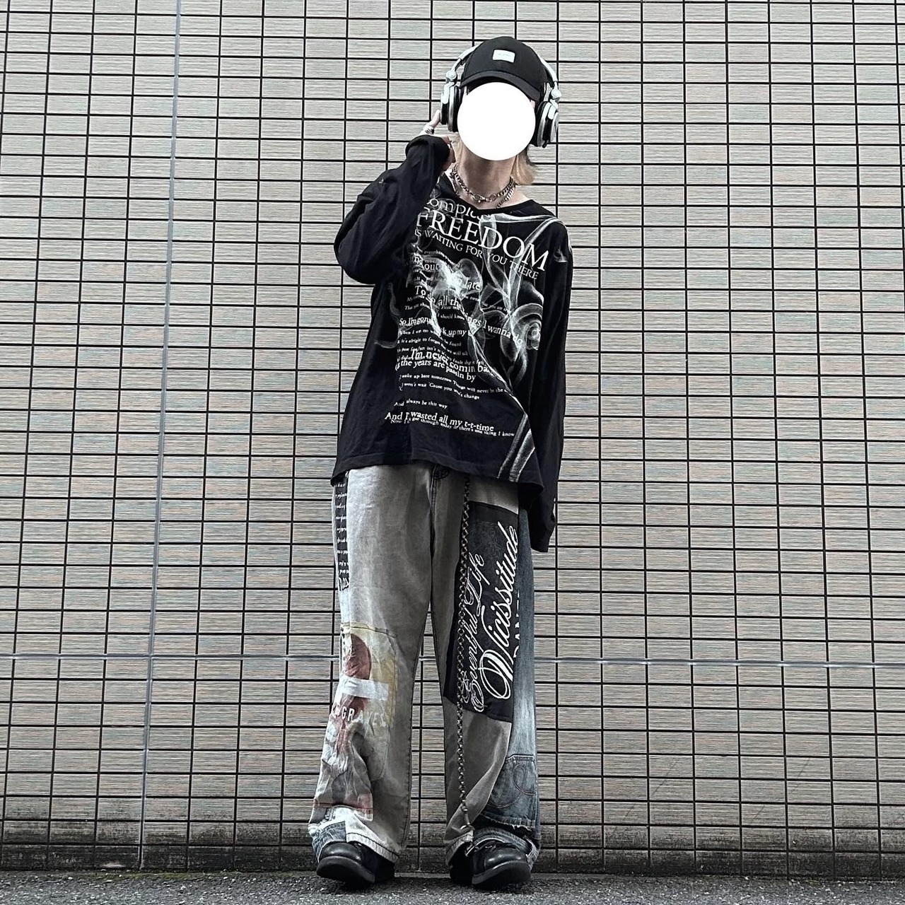 Pant 再構築 フォトデザイン フレアデニム 英文字デザイン パッチワーク y2k