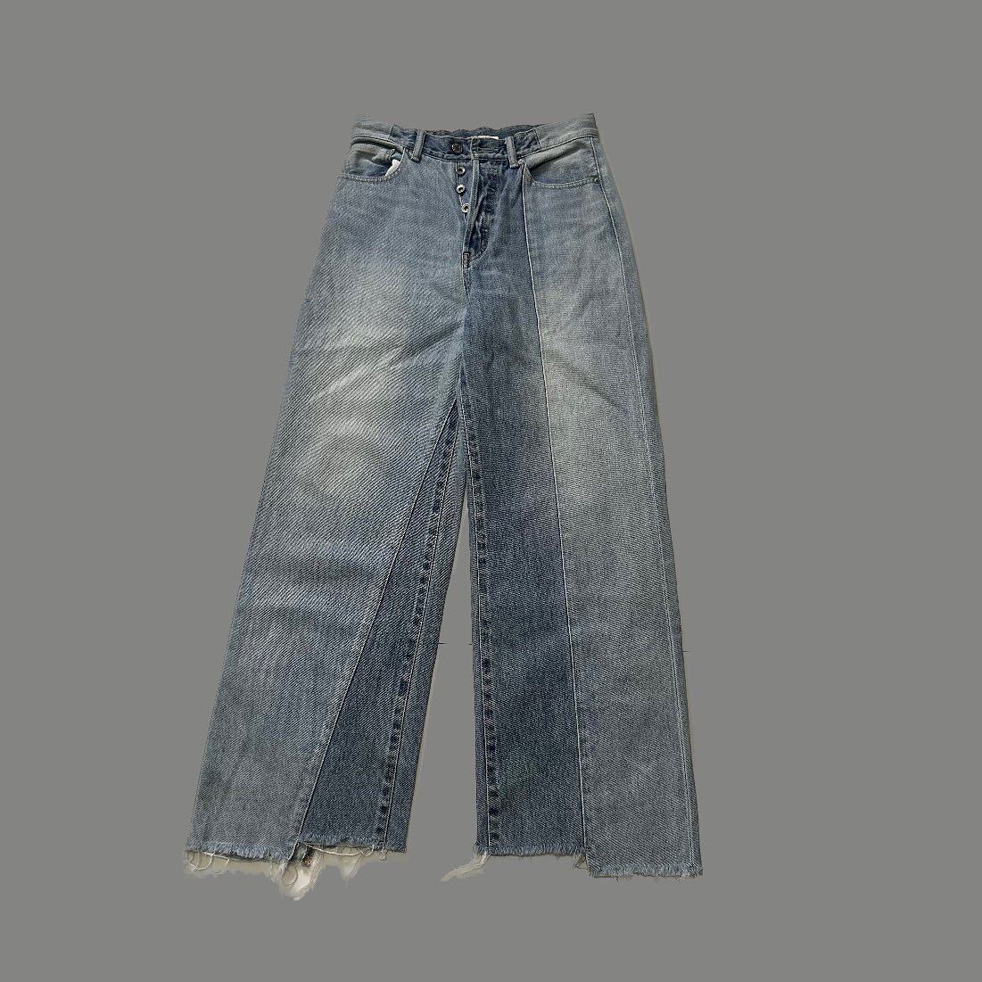 Pant レディース ワイドストレート リメイク風 カットオフデニム