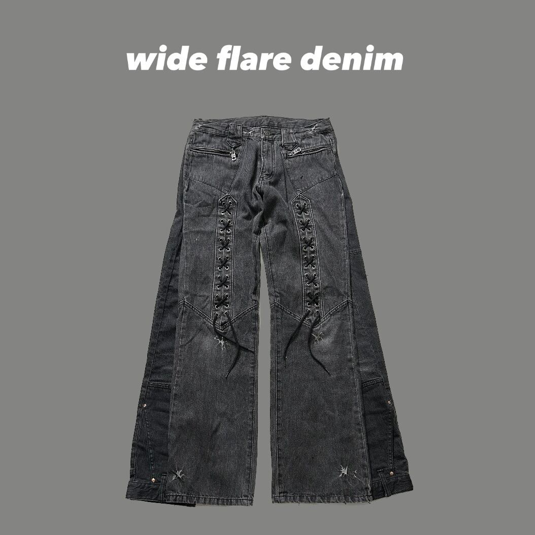 再構築 オリジナル ワイドブラック編み込み加工デニム ペイントデザイン フレアデニム