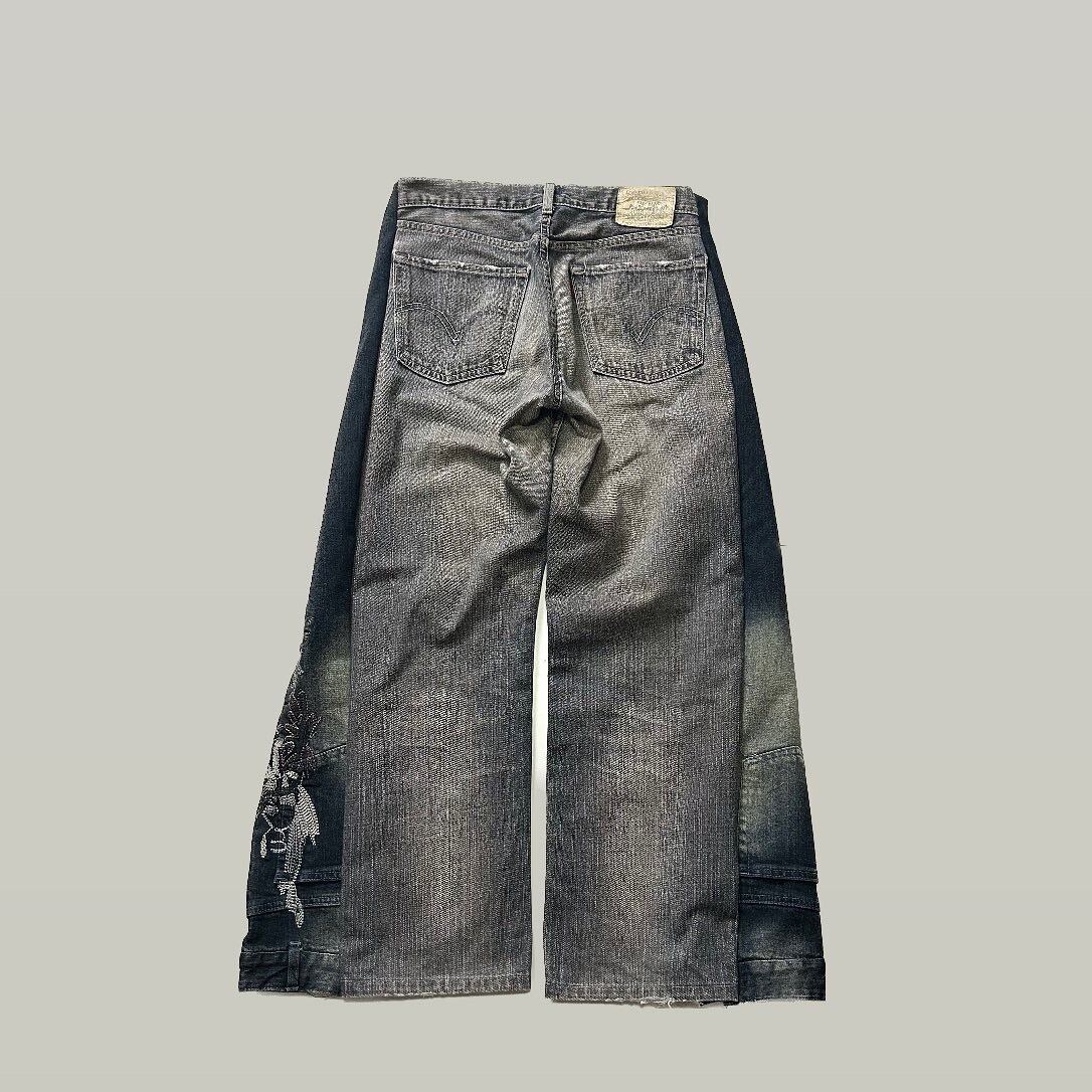 Pant 再構築 フレア刺繍デニム ワイドフレア リメイク オリジナル おすすめ