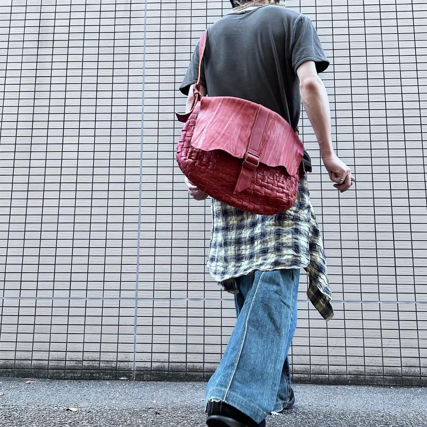 バッグ オールレザー編み込み レトロ ショルダーバッグ