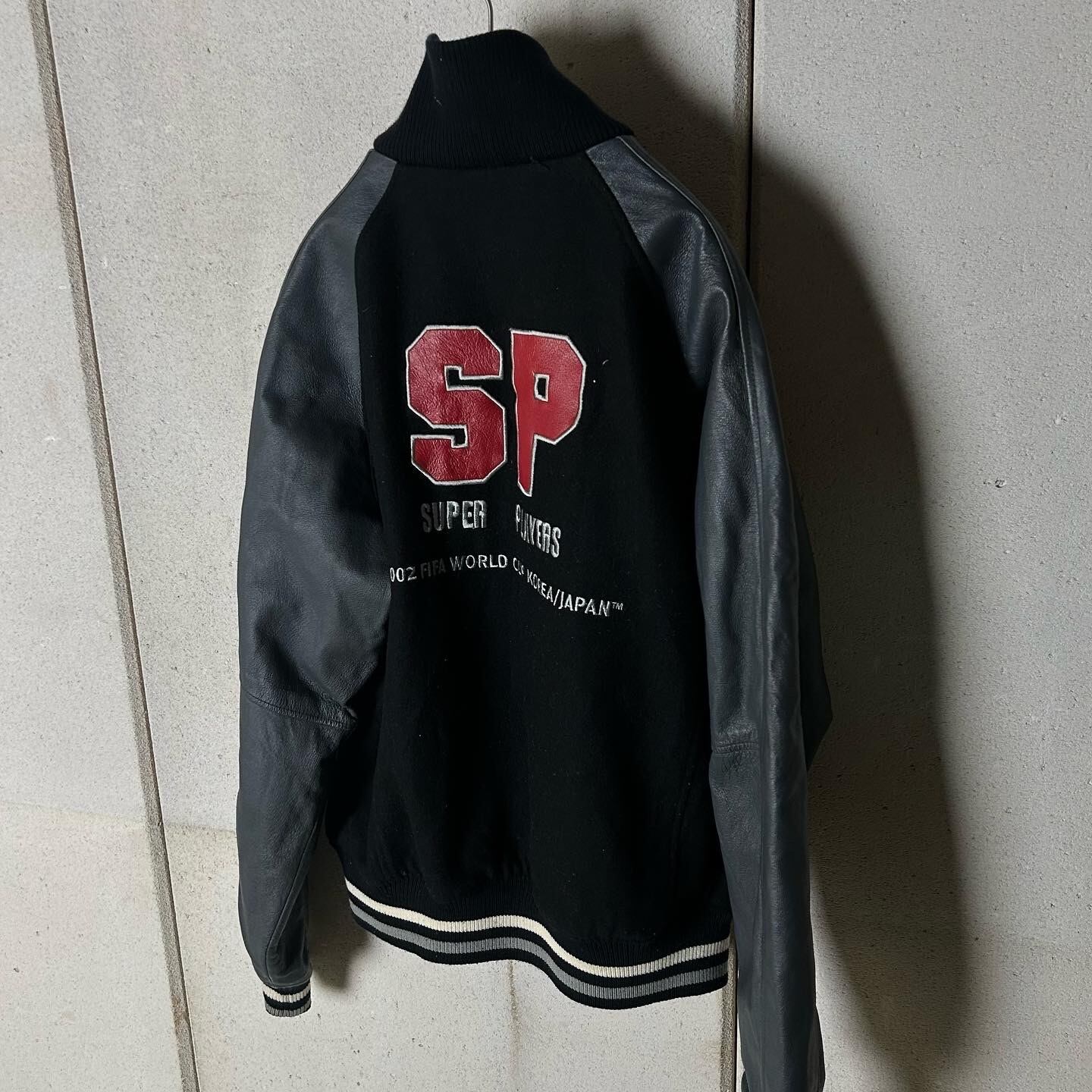 Tops used 古着 レザー切替 ハイネックスタジャン バック刺繍 日韓