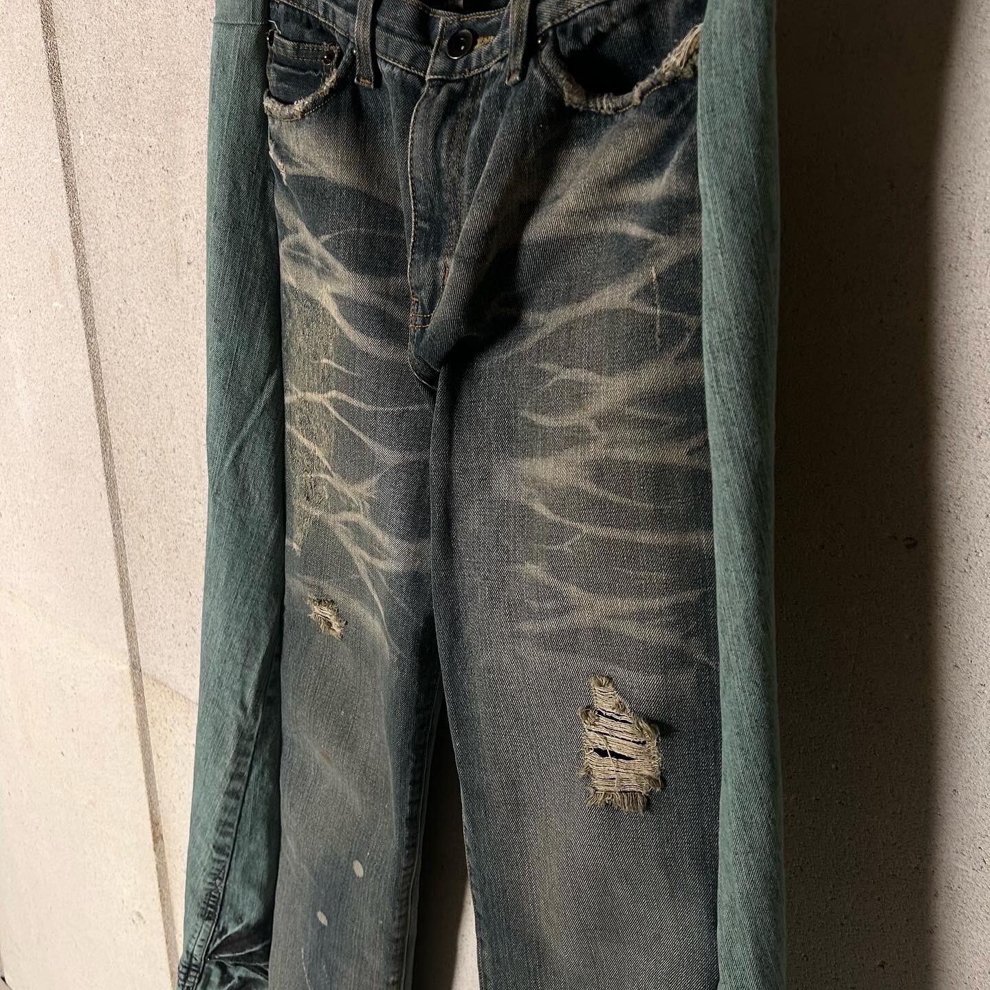 pants 3moonオリジナル リメイクデニム 蜂の巣加工 ダメージ加工 鬼渋 ワイドフレア