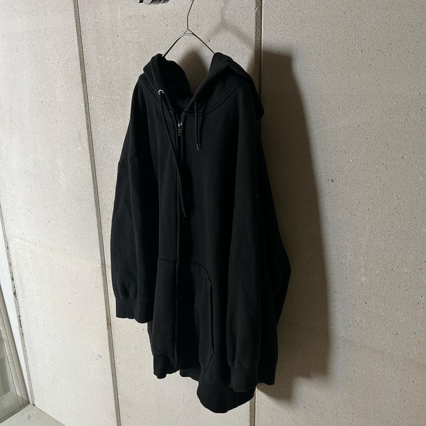 Tops used 古着 ボリューム厚手ジップアップパーカー 黒 ワイドスリーブ