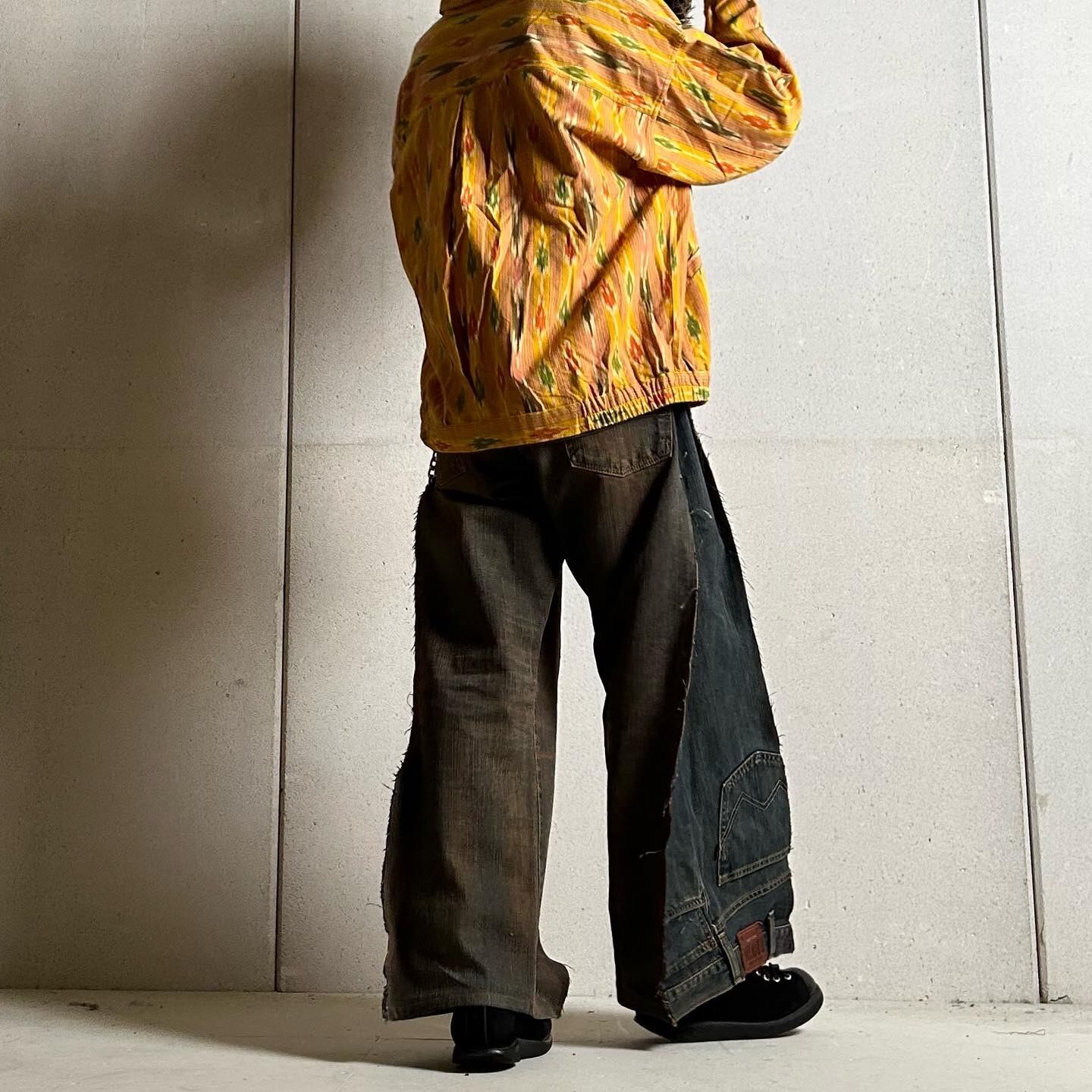 pants オリジナルリメイクパンツ 鬼渋 ウォッシュ加工色落ち ヴィンテージ ライクワイドデニム