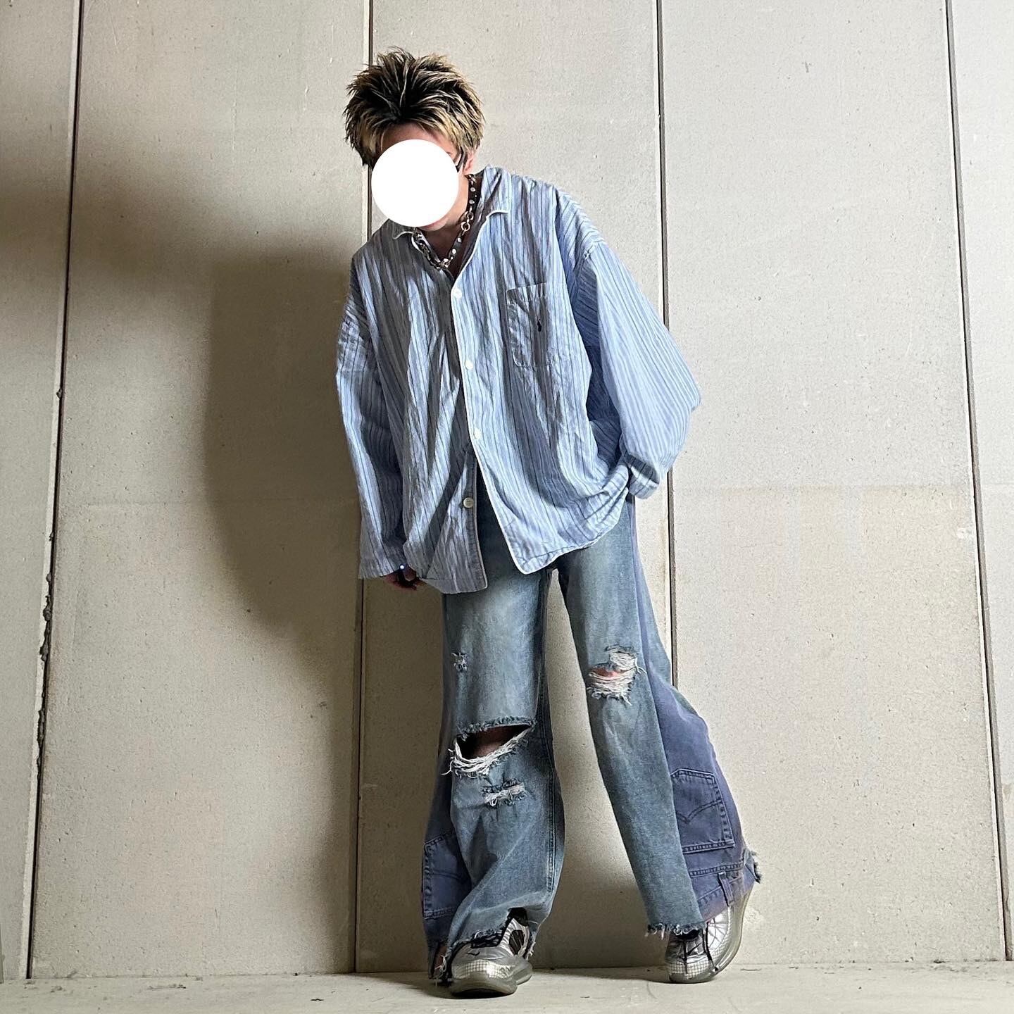 Pant オリジナルリメイク ダメージサイドドッキングワイドフレアデニム パッチ