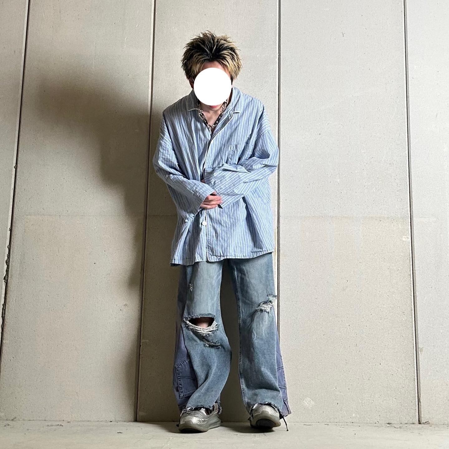 パジャマになりすぎないようにダメージのあるワイドなパンツを合わせてかっこよく着こなしています!